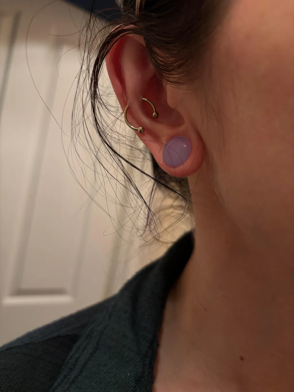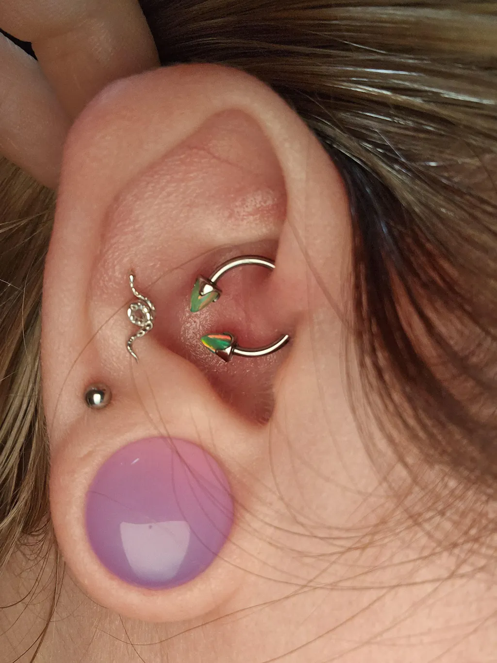 lavender opalite single flare plug model shot close up