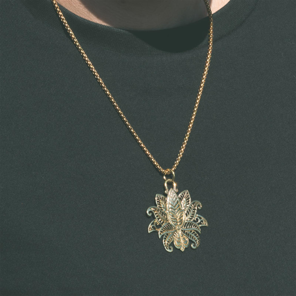 Lotus Flower Brass Pendant With 18k Gold Box Chain Model Shot