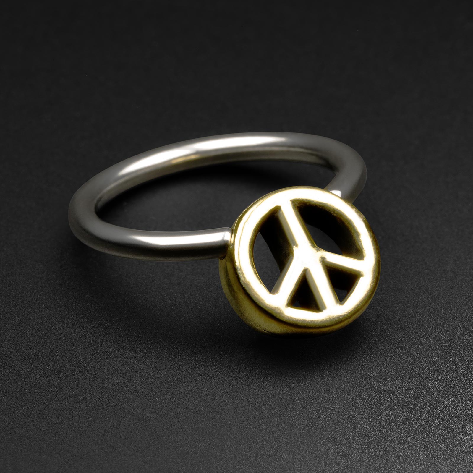 Peace Sign Brass & Surgical Steel BCR Ball Closure Ring Model Shot