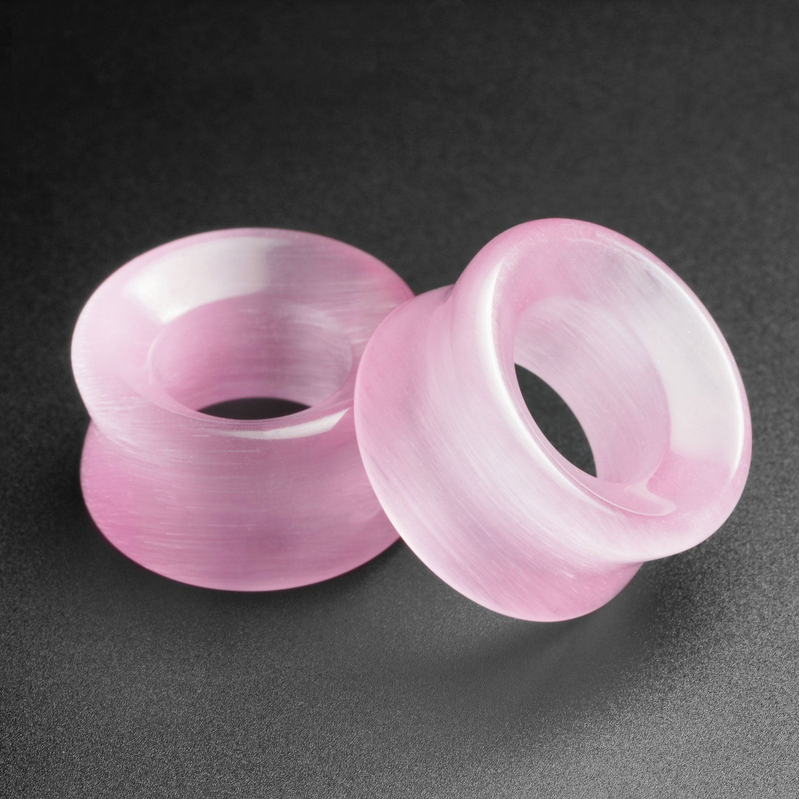 Pink Cat's Eye Glass Double Flare Concave Tunnel