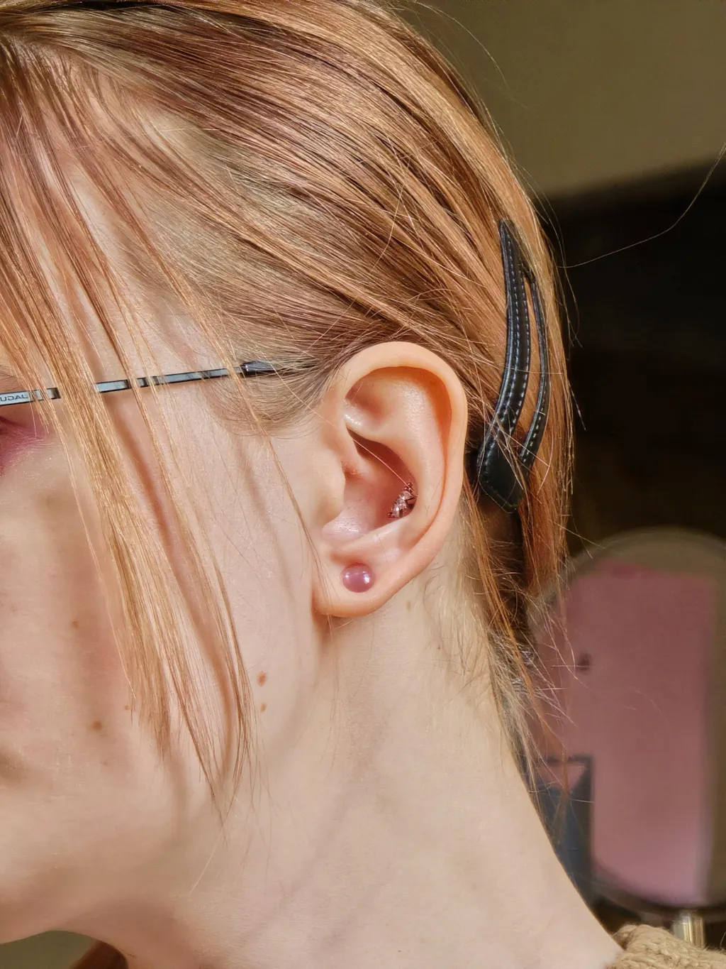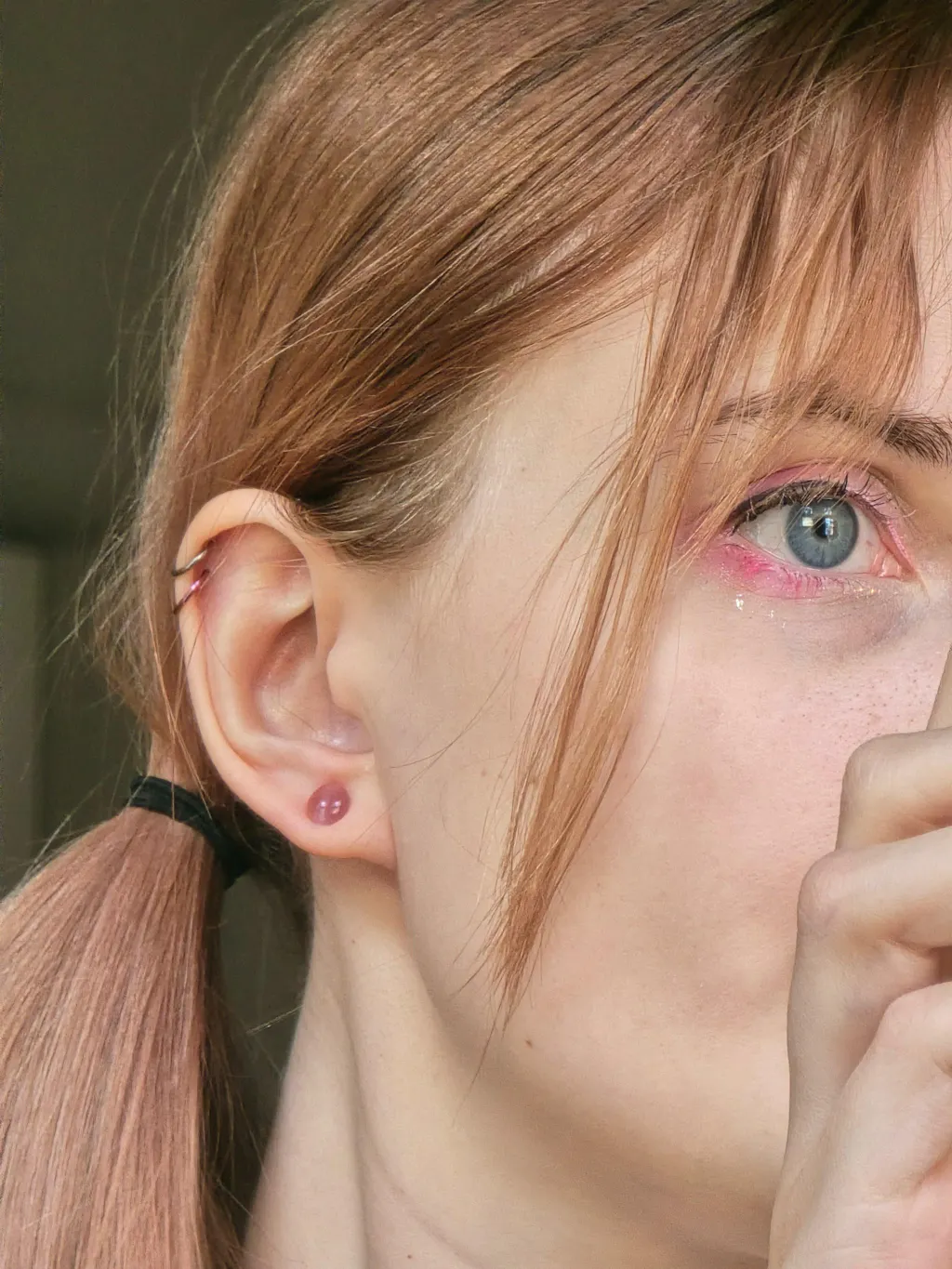 Pink Cat's Eye Glass Single Flare Convex Plug Model Shot