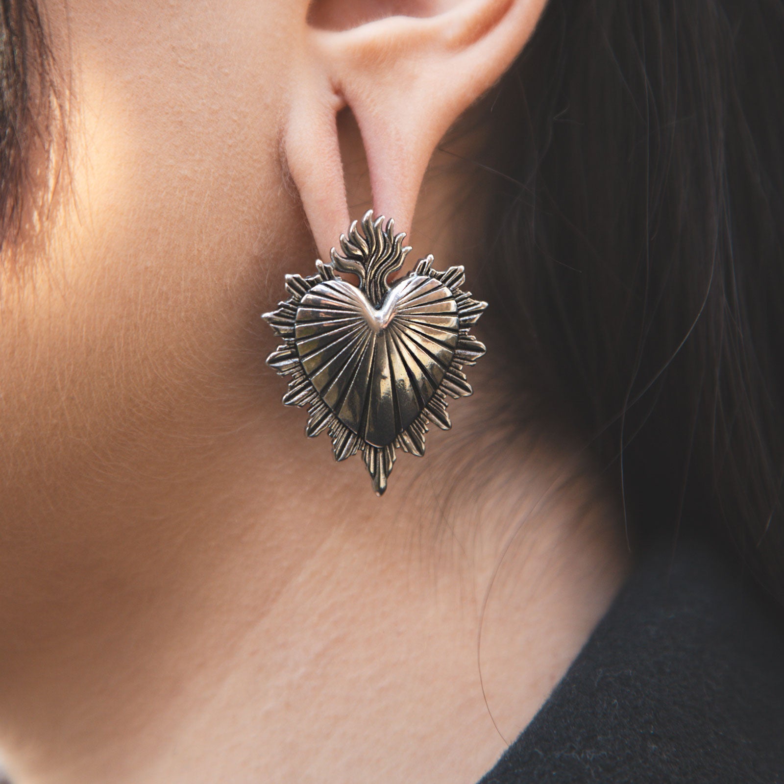 Punk Vintage Heart Surgical Steel Ear Weight Model Shot