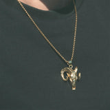 Ram Skull Brass Pendant With 18k Gold Box Chain Model Shot