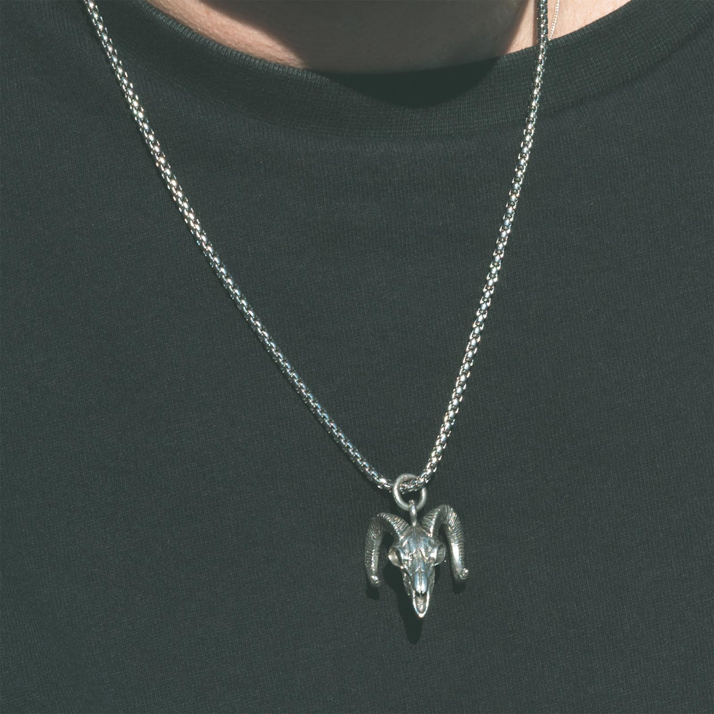 The pendant features an intricately designed Ram Skull, symbolizing strength and power. The stunning silver-toned alloy adds an elegant touch to the pendant, making it a versatile and eye-catching piece that complements a wide range of outfits and styles.
