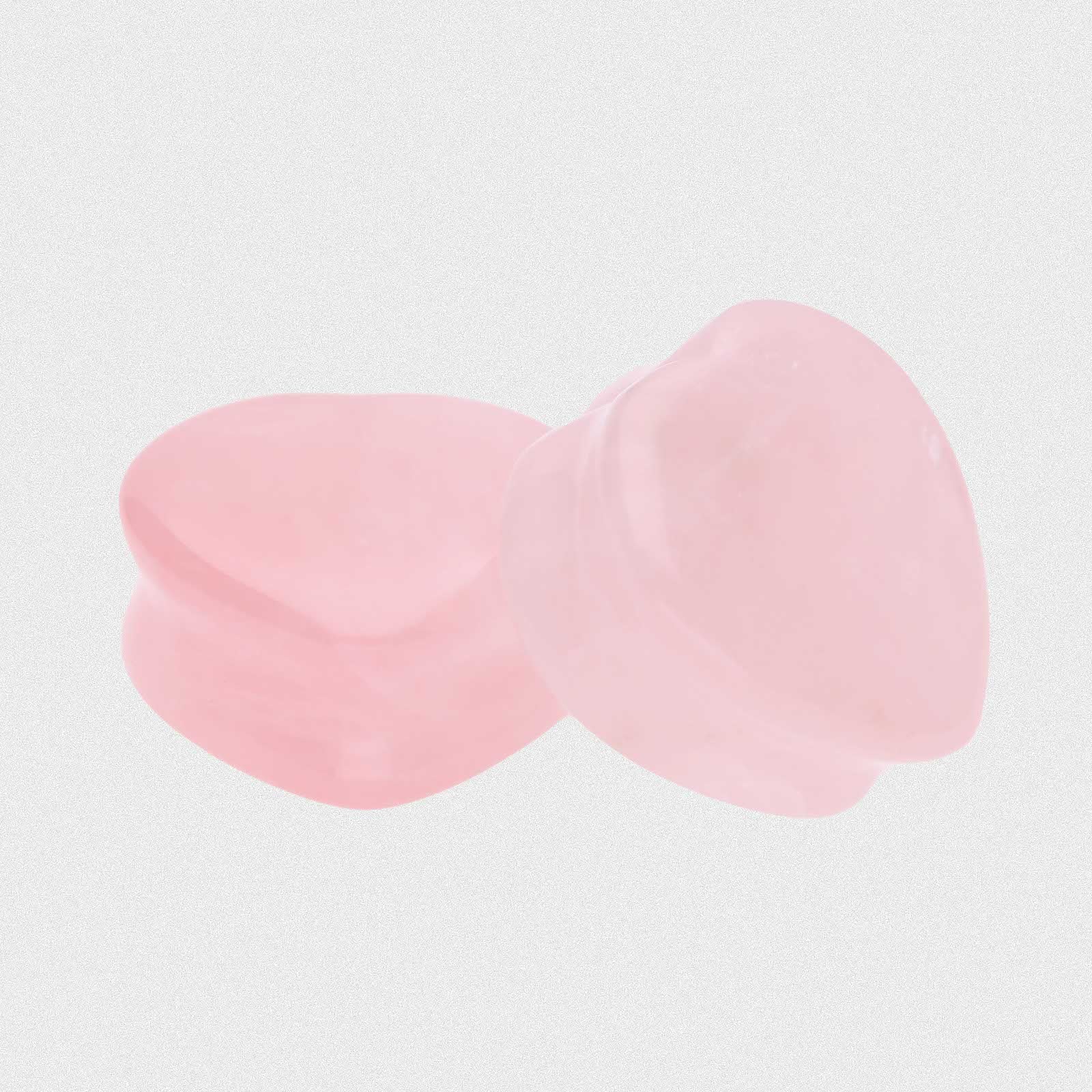 Rose Quartz Heart Shaped Double Flare Stone Plug
