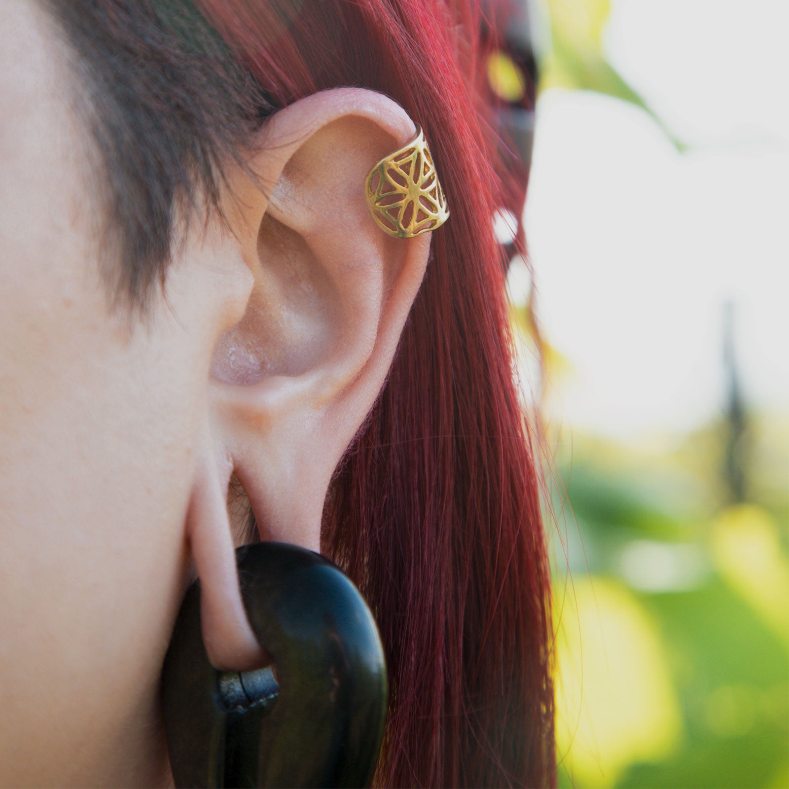 Seed Of Life Brass Ear Cuff Model Shot Front