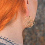 Seed Of Life Brass Mini Plug Hoops Model Shot