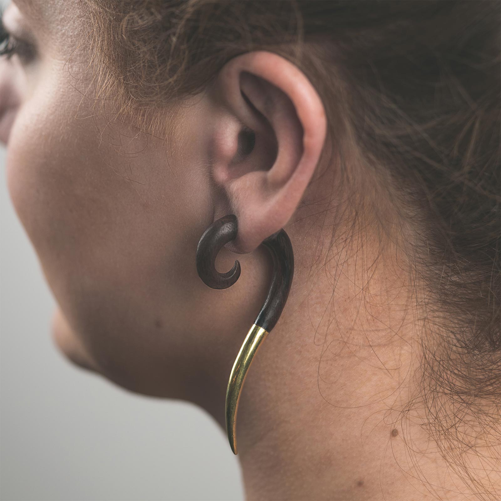 Sono Wood Fake Gauge Hanging Spiral With Brass Tip