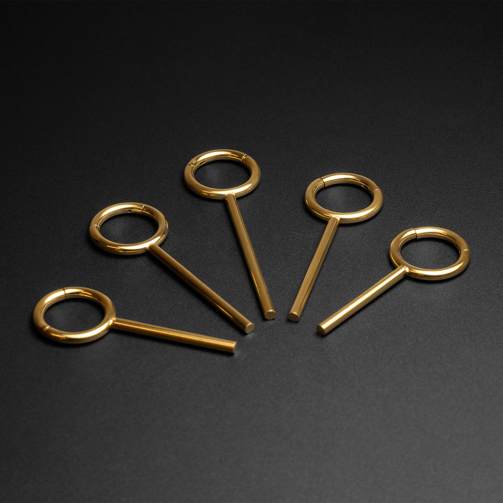Add a touch of golden elegance to your collection with the Sun Beam Gold PVD Ear Weight. Featuring a sleek, wind chime-inspired design, this ear weight showcases multiple polished rods gracefully suspended from smooth hoops, creating a radiant and eye-catching look that gleams with every movement.
