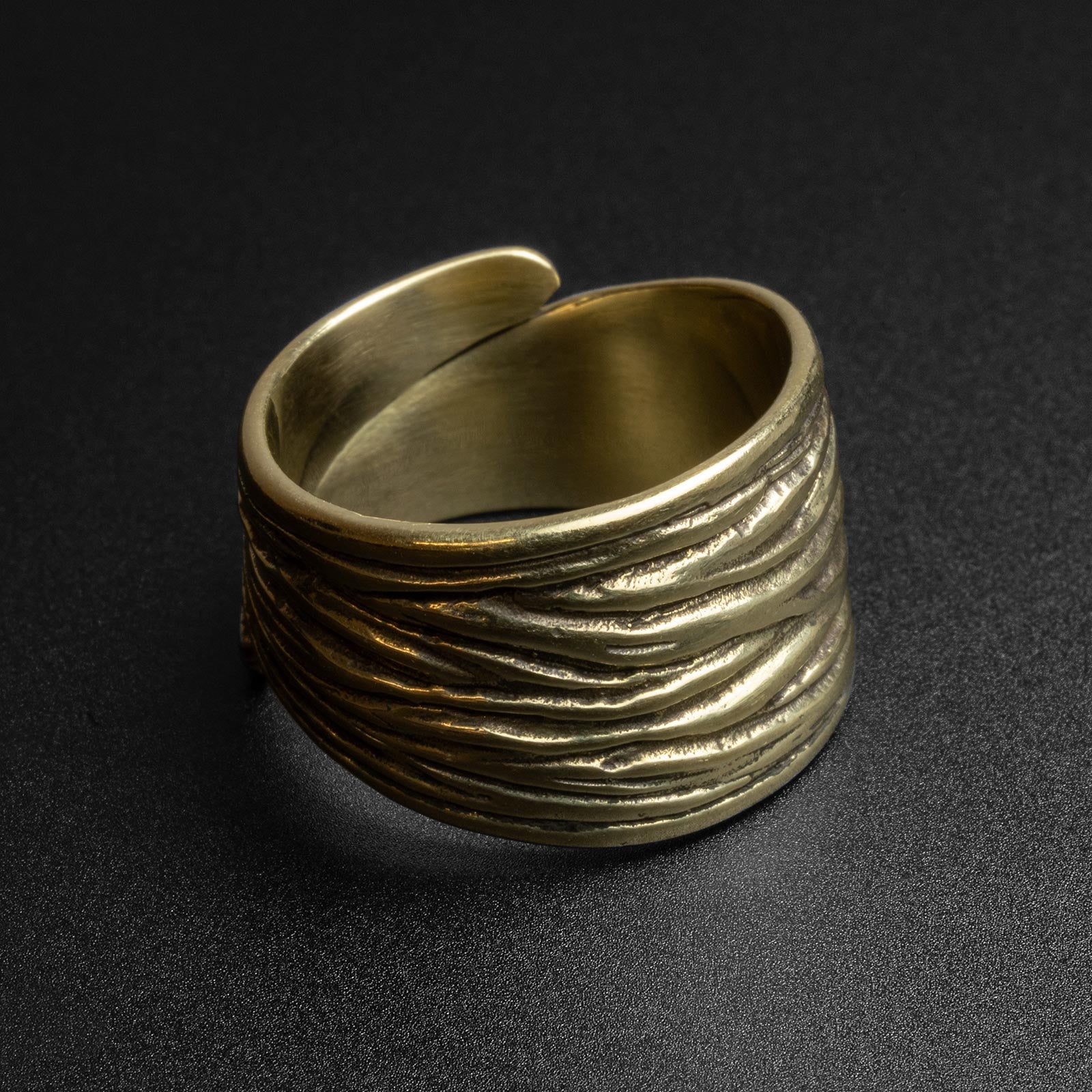 Textured Tree Bark Brass Ring