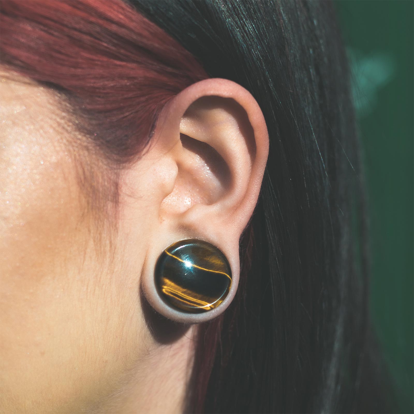 Yellow Tiger's Eye Double Flare Concave Plug Model Shot