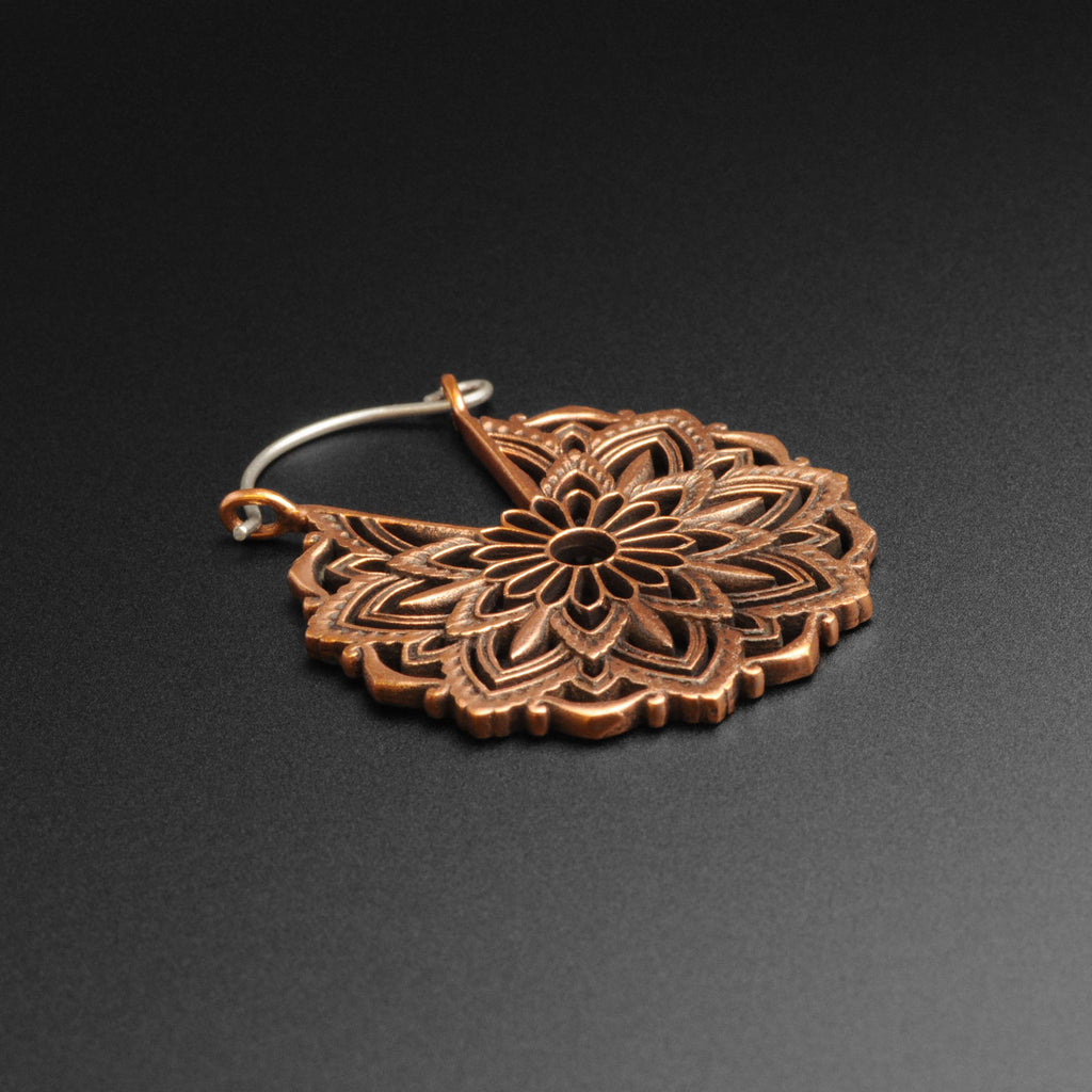 Tribal Flower Copper & Silver Plug Hoops Model Shot