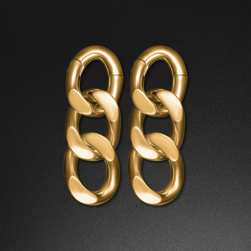 Experience the allure of our Triple Cuban Link Gold PVD Magnetic Ear Weight and elevate your ear stretching journey to new heights. Crafted from high-quality surgical steel and coated with a luxurious Gold PVD finish, this ear hanger is a true masterpiece that combines style, durability, and functionality.