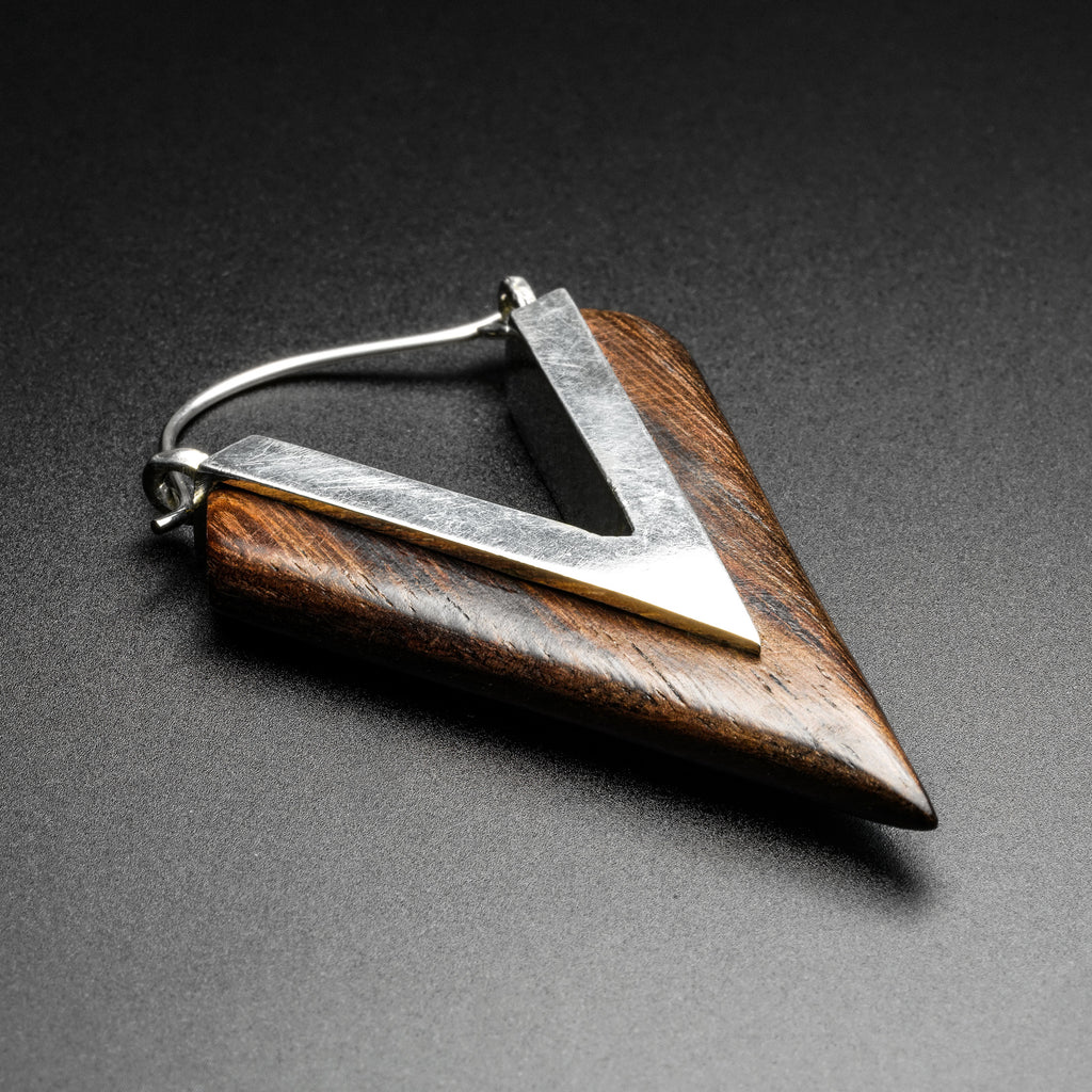 V-Shape White Brass & Narra Wood Plug Hoops Model Shot